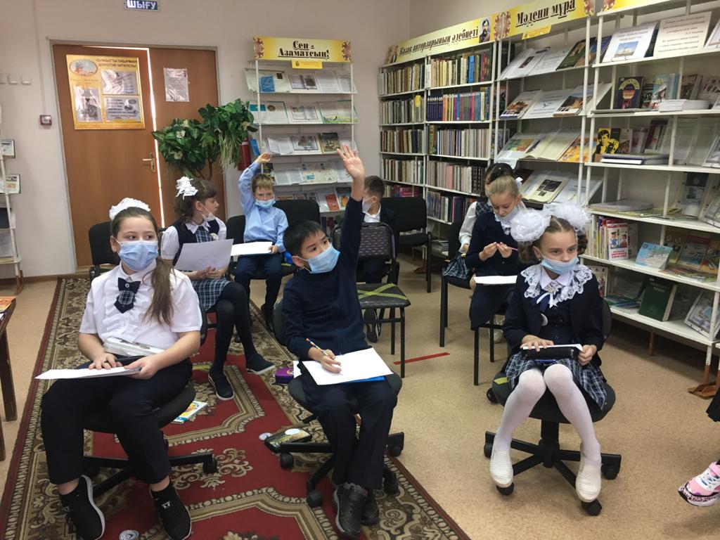 В рамках проекта проведен челлендж «Писатели-юбиляры 2020 г.», в ходе которого ученики прочли наизусть поэтические и прозаические отрывки из произведений казахстанских и зарубежных писателей. Разработан практикум по читательской грамотности для начальной школы. В программе практикума отработка приёмов осмысленного и выразительного чтения, работа с «толстыми» и «тонкими» вопросами, работа с различными источниками информации (текст и фильм «Детство А.С. Пушкина», сказка Д.Родари «Вопросы наизнанку», рассказ М.Сундетова «Новая форма»). Эмоциональный фон занятия обеспечивает выразительное чтение стихотворения Д.Шатова «Любите друг друга». Практикум проводится в формате командного преподавания – библиотекарь и педагог дополнительного образования. Первыми участниками практикума стали ученики 3-4 классов. В итоге ребята отметили, что научились ставить сложные вопросы, читать текст с пометками и писать трёхминутное эссе.
