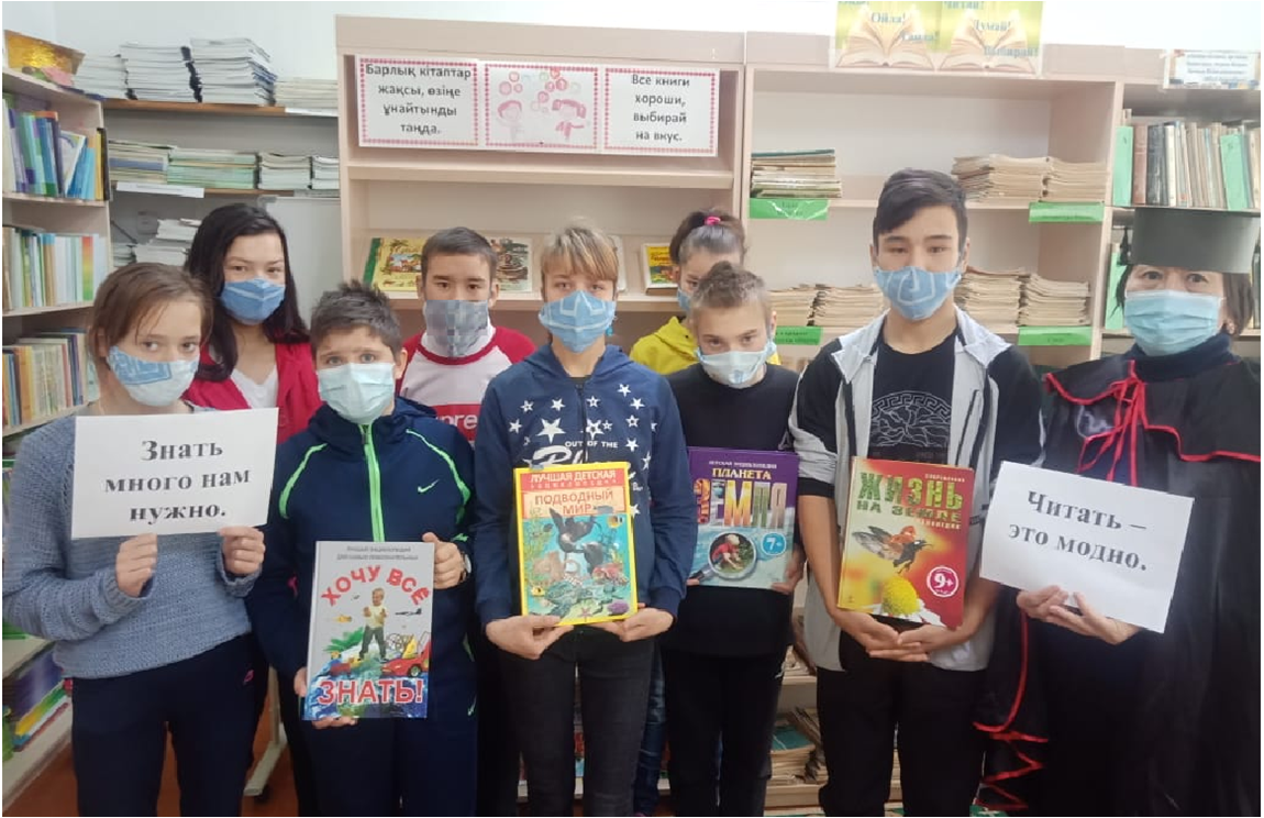 На следующий день ученики среднего звена стали участниками интеллектуальной игры «Спроси у книги», построенной по аналогу телевизионной викторины «Своя игра». Вопросы были подобраны из энциклопедий, имеющихся в библиотеке. Особенность игры в том, что если ребята затруднялись ответить на вопрос, то произносили: «Спрошу у книги». После чего открывали энциклопедию на странице, указанной в презентации, и находили нужную информацию.
