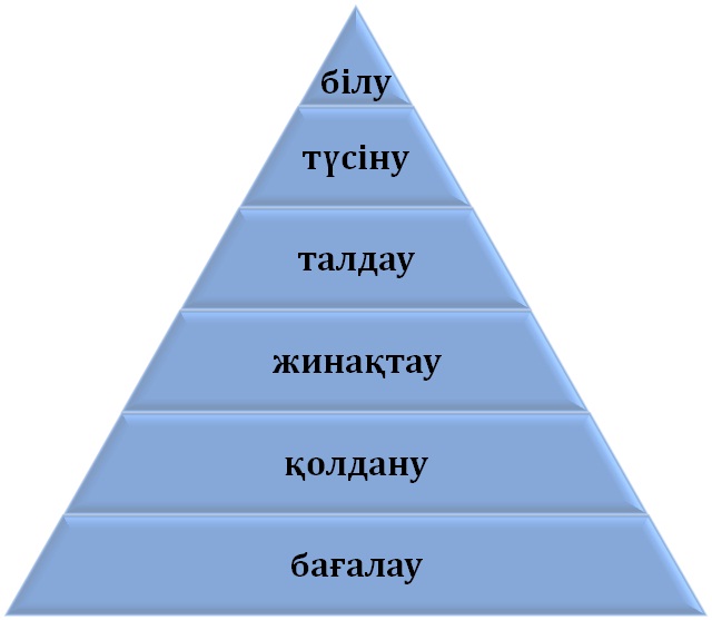 Дегенмен әр мұғалім сабақ жоспарлағанда пәнінің ерекшеліктерін ескеруі қажет. Қазақ тілі сабағында оқушының сыни ойлау, өз ойын жаттанды емес, өз сөзімен еркін жеткізе алу, өз жауабына сенімді болу қабілеттерін ашуымыз керек. Кембридж тәсілімен оқыту Блум таксономиясына негізделіп жоспарланады. Таксономия құрылымның (сабақ жоспарының) жүйелілігін білдіреді. Блум таксономиясының негізін салушы американдық психолог, педагог, профессор Бенджамин Блум. Ол сабақ құрылымын алты деңгейге бөліп қарастырады. Олар: білу, түсіну, қолдану, талдау, жинақтау, бағалау. Сабақтың жалпы мақсатынан басқа әр деңгейге мақсат пен күтілетін нәтиже, сондай-ақ әр деңгейдің тапсырмасына критерийлер мен дескрипторлар қойылады. Бұл оқушының әр деңгейде белгілі бір нәтижеге қол жеткізіп, білім деңгейін бақылап отыру үшін қажет. Мысалы, қазақ тілі сабағын жоспарлағанда білу деңгейінде тақырыпты оқушылардың өзі анықтау мақсатында түрткі болатындай тапсырмалар, сұрақтар немесе 5 минуттық бейнероликтер көрсетуге болады.